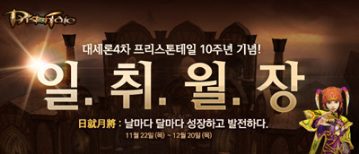 ... 와이디온라인은 자사의 장수 MMORPG(다중접속역할수행게임) '프리스톤테일'에 '일취월장' 이벤트를 오는 22일 진행한다고 밝혔다. '일취월장'은 '프리스톤테일' 대규모업데이트 '대세론'을 기념한 이벤트 중 마지막으로, 와이디온라인은 지난 9월부터 네 차례에 걸