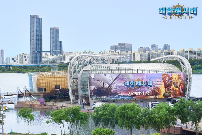 ... 이번 옥외 홍보는 게임업계 최초로 한강 세빛섬에서 진행된다. 세빛섬 전면에 전시된 가로 42미터, 세로 10미터의 초대형 포스터에는 ‘대항해시대 오리진’의 주요 캐릭터들과 웅장한 선박의 일러스트를 담았으며 후면의 가로 32미터, 세로 7미터의 현수막은