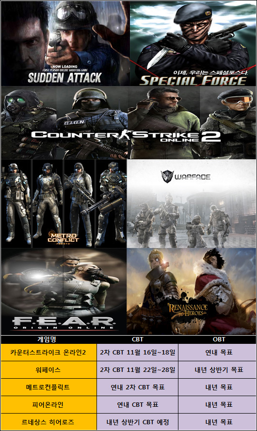 ... 현재 '서든어택'과 '스페셜포스'는 7년 이상 된 구작임에도 화려한 그래픽과 사실성으로 중무장한 신작들의 도전에 흔들림 없는 총기류 게임 1, 2위를 유지하고 있다. 이런 시장 상황에서 넥슨은 '카운터스트라이크온라인2(카스온2)' '워페이스', 한게임은 '메트로컨플릭트'로