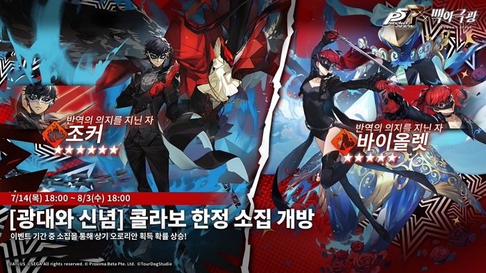 ... 콜라보 업데이트 ‘달빛 아래의 괴도’를 통해 이용자는 8월 3일까지 ‘조커’, ‘퀸’, ‘바이올렛’, ‘모나’, ‘폭스’ 등 총 5종의 &lsqu