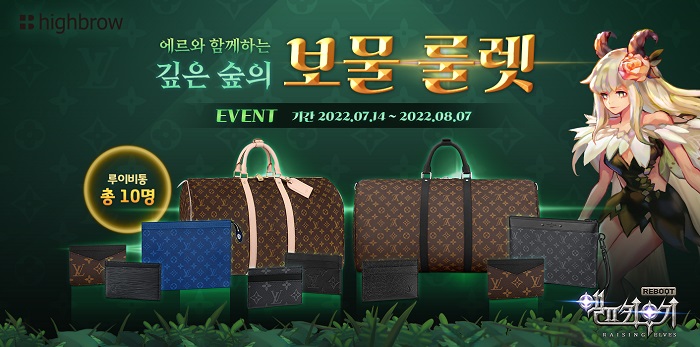... 하이브로는 "플람" 서버 오픈 기념 랭킹 이벤트로 각 서버 별 랭킹 기준에 따라 "루이비통 키폴 가방" 등 다양한 경품을 준비했다. 이에 더해 룰렛 이벤트로 <엘프키우기> 플레이를 통해 토큰을 획득하여 게임 내 재화를 획득할