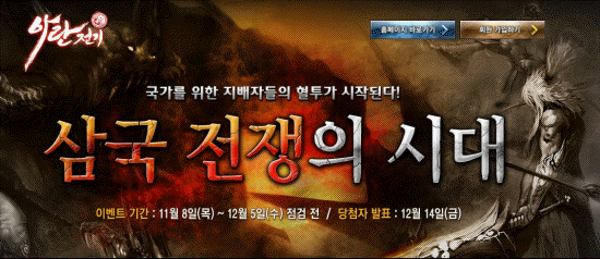... 라이브플렉스(대표 김병진)의 다중접속역할수행게임(MMORPG) ‘아란전기’가 다음달 5일까지 국가전 이벤트를 실시한다. 영월국과 신성국, 열일국 등 3개 국가의 대립 구조로 이루어진 ‘아란전기’는 각 국가간의 패권을 다투는 별도의 전투 시스템 ‘국가전’을 진행한다. 하루