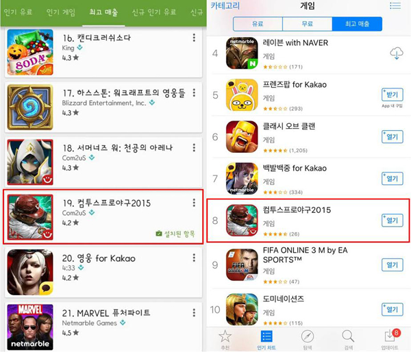... 회사 측은 지난 두산과 NC의 플레이오프 기간 동안 애플 앱스토어 게임 매출 순위 8위를 기록하며 톱10에 재진입 했으며, 스포츠게임 매출 순위에서는 다시 1위를 탈환했다고 전했다. 또 구글플레이 게임 매출 순위에서도 19위에 올랐다. 또한, 이용자 지표에서 역시 상승세를 나타