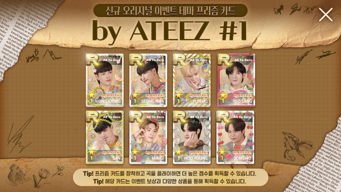 ... 모바일 리듬게임 ‘슈퍼스타 에이티즈(SuperStar ATEEZ)'에서만 독점으로 만날 수 있는 멤버들의 한정 테마 카드를 업데이트하고 이와 더불어 ‘폴. 바. 꾸(폴라로이드 바꿔 꾸미기) EVENT’를 진행한다