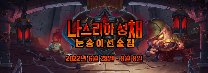 ...blizzard. com)의 전세계 1등 무료 디지털 카드 게임 하스스톤(Hearthstone®)의 최신 확장팩, 나스리아 성채 살인 사건(Murder at Castle Nathria) 공개를 플레이어들과 함께 기념하고 축하하기 위해, 하스스톤을 즐기면서 멋진 선물도 획득할