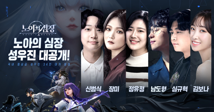... ‘노아의 심장’은 스팀펑크 풍의 오픈월드 MMORPG로, 미확인 행성에서 개성 넘치는 ‘스피릿’들과 함께 신묘한 모험을 즐길 수 있다. 이번에 공개된 성우진은 심규혁, 정유정, 박요한, 장미 등을 포함해 총 34명으로, 게임