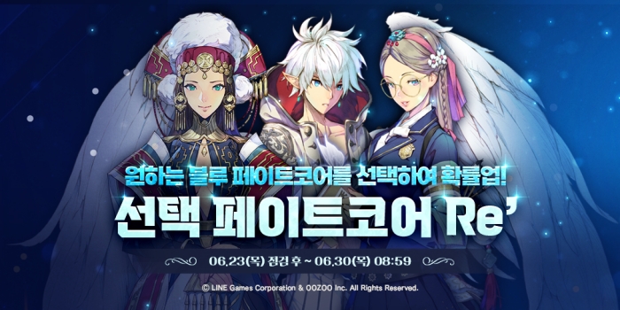 ... [자료제공 = 라인게임즈] 라인게임즈(대표 김민규)는 24일 자사가 서비스하는 모바일 RPG '엑소스 히어로즈'에서 블루 등급 ‘페이트코어’(캐릭터 능력 및 외형 변경 의상)에 대한 선택 확률업 이벤트를 진행한다. ‘블루