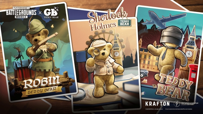 ... 배틀그라운드 모바일 컨셉에 맞춰 특별히 디자인된 GB 테디베어를 비롯해 영국의 상징적인 캐릭터인 로빈후드 테디베어와 셜록홈즈 테디베어 등 총 3종의 신규 버디가 출시된다. 또한 이용자가 GB 테디베어 테마로 캐릭터를 꾸밀 수 있도록 세트, 머리 장식, 참, 낙하산 등 전용