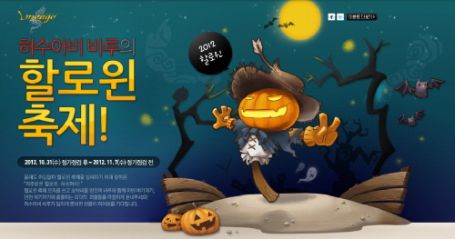 ... 다음달 7일까지 진행될 이번 이벤트는 게임 내에서 ‘저주받은 할로윈 허수아비’를 사냥하면 ‘호박씨’와 새롭게 선보이는 무기 아이템 ‘호박 체인소드’, ‘호박 키링크’를 얻을 수 있다. 또한 재미있는 외형으로 변신할 수 있는 ‘할로윈 캔디’ 등 다양한 아이템도 획득이 가능하