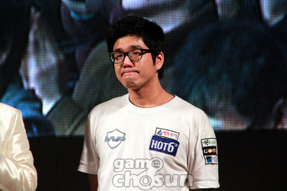 ... '동래구' 박수호(MVP)가 27일 서울 한양대학교 올림픽체육관에서 진행된 '옥션 올킬 스타리그 2012' 결승에서 SK텔레콤T1 정윤종에 1대4로 패하며 준우승에 머물렀다. 준우승을 차지한 박수호가 "형편없는 경기를 펼쳐 죄송하다"며 아쉬움에 눈물을 흘리고 있다. [이