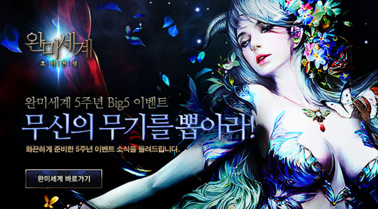 ... 먼저 '완미세계' 최고급 아이템을 획득할 수 있는 '무신의 무기를 뽑아라' 이벤트가 진행된다. 이용자는 이벤트 페이지 내 룰렛을 돌리면 '명성'과 각종 게임 내 고급 아이템을 획득할 수 있다. 또 매주 목요일에만 진행되던 '원령 군단 습격'이 이벤트 기간 동안 월요일과