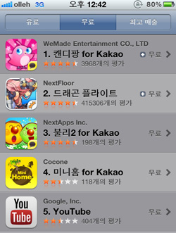 ... 위메이드 엔터테인먼트(이하 위메이드, 대표 김남철, 남궁훈)는 자사의 모바일게임 '캔디팡'이 애플 글로벌 앱스토어에 출시된지 하루만에 마켓 1위에 올랐다고 29일 밝혔다. 회사 측은 이번 결과가 iOS 플랫폼에 '카카오톡 게임하기' 버전의 출시 전 달성결과로 향후 해당 버전