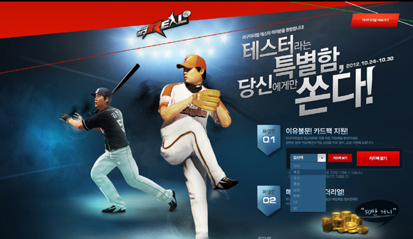 ... 이번 테스트는 총 6일간의 일정으로 10만여 명의 참가자들이 신청을 한 바 있다. 이 게임은 온라인 야구게임 최초로 언리얼3 엔진을 탑재해 250여명의 선수얼굴과 40여명의 특이 타격과 투구폼을 구현했다. 특히 다대다 모드와 키보드와 마우스 등 2가지 조작방식도 가능하다