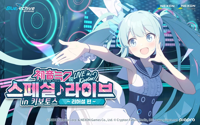 ... ‘하츠네 미쿠’는 폭발 ‘공격타입’ 서포터로, 원형 범위 내 아군을 치유하고 공격력을 증가시키는 ‘EX 스킬’을 사용한다. 같은 기간, 인게임 이벤트 ‘하츠네 미쿠의 스페셜 라이브 in 키보토스 ~