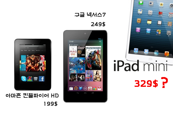 ... 특히 아이패드 미니의 가격이 공개된 직후 애플의 주가가 큰 폭 떨어지면서, 가격이 시장에 충격을 줬을 것이라는 전망까지 제기되고 있다. 애플은 23일(현지시간) 미국 새너제이의 캘리포니아 극장에서 최신 태블릿PC 아이패드 미니를 공개했다. 아이패드 미니는 화면 크기