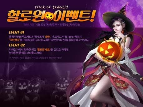 ...‘삼검호’에서는 11월 5일까지 일부 스페셜 던전 공략을 완료하면, 카드 뒤집기와 상점 이용을 통해 ‘호박’, ‘악마상자’ 등 여러 아이템을 지급한다. ‘천룡팔부’에서는 게임 내 황금수를 흔들어 금화를 획득 하는 유저를 대상으로 신규 의상 3종에 대한 호감 투표를 진행하고, 전체