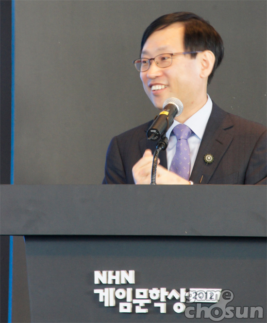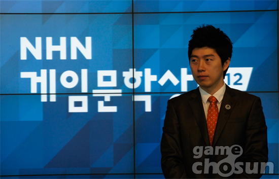...18일 강남구 서초동 삼성 딜로이트관에서 진행된 ‘NHN게임문학상2012’ 시상식에 참석한 김상헌 NHN 대표가 본 행사에 앞서 인사말을 전하고 있다. [이민재 기자 sto@chosun. com] [gamechosun