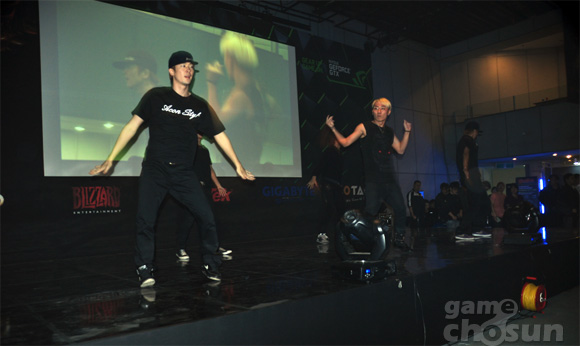...14일 서울 강남구 섬유센터에서 개최된 '디아블로3 하드코어 게임대회'에서댄스팀 '에이콘'이 무대 위에 올라 대회 성공을 기원하며 흥겨운 댄스 공연을 선보였다. 게임 대회 옆 메인 스테이지에서이들의 공연은지드래곤 '크래용', 개가수 '용감한녀석' 등 빠르고 경쾌한댄스곡에 맞춘