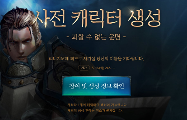 ... 리니지M 사전캐릭터 생성을 위해서는 '플레이엔씨' 계정이 필요하다. 계정 생성은 계정 당 1회만 참여 및 생성할 수 있다. 또 원작 '리니지'에서도 논란이 됐던 바 있는 바코드 아이디는 사용할 수 없고, 불건전 단어 역시 제재된다