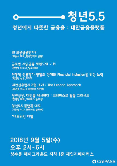 ...이날 행사에서 이종수 한국임팩트금융 대표는 '왜 포용금융인가?'라는 주제로 발표를 하며, 안상혁 딜로이트 파트너는 '글로벌 개인금융 트렌드와 기회"에 대해 소개한다. 이 밖에도 김민정 크레파스솔루션 대표는 '청년금융, 대안을 제시하다: 크레파스로 꿈을 그리세요'라는 주제로 강연대에
