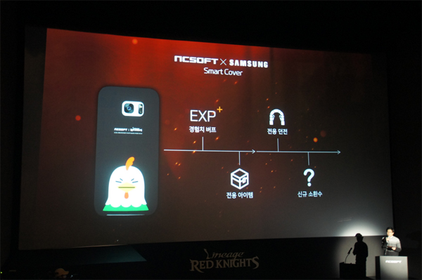 ... 리니지 레드나이츠 스마트 커버는 배경 화면 스킨 뿐만 아니라, 공식 커뮤니티와 페이스북 페이지, 게임 바로 가기 등을 제공하고, 스마트폰 내 아이콘까지 리니지 레드나이츠 콘텐츠로 꾸며진다. 특히 스마트 커버를 장착한 기기는 리니지 레드나이츠에서 추가 경험치, 전용 아이템 등