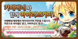 ... 이번 프로모션 기간 중 전국 카페베네 매장에서는 '아이러브커피'에서 사용할 수 있는 특별한 아이템 쿠폰을 지급한다. 해당 쿠폰은 카페베네 특유의 인테리어 소품으로 교환돼 유저가 자신만의 카페베네 매장을 소유할 수 있게 해준다. 이 쿠폰이 프로모션 첫날 순식간에 동난 것