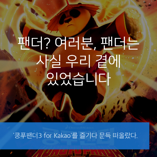 ... 하지만 막상 플레이 해보니 깔끔한 그래픽, 차별화 된 스킬과 액션성이 돋보였다. '쿵푸팬더3'는 게임을 종료해도 문득 생각나 다시 즐기게 되는 묘한 매력을 가졌다. 그리고 엉뚱하지만 게임을 즐기던 도중 떠오른 팬더들을 카드뉴스에 담아봤다
