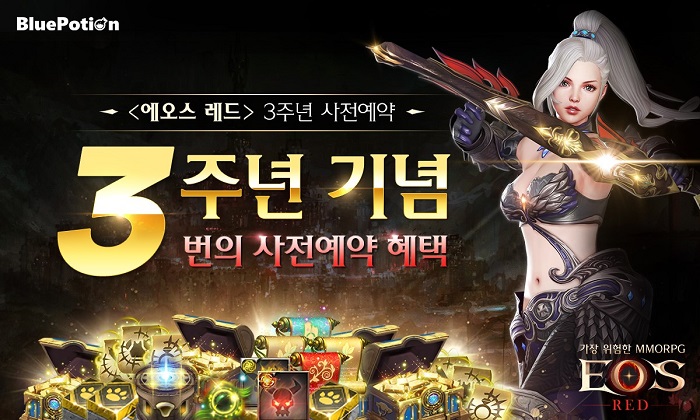 ... 이러한 <에오스 레드>가 올해 3주년을 맞이하게 되었으며, 이를 기념하기 위하여 3주년 사전 예약 보상및 신규 서버 ’테르나’의 캐릭터명 선점 이벤트를 실시한다. 사전예약 보상은 1차, 2차, 3차에 나누어진행되며, 1차 보상 상자는 차원의