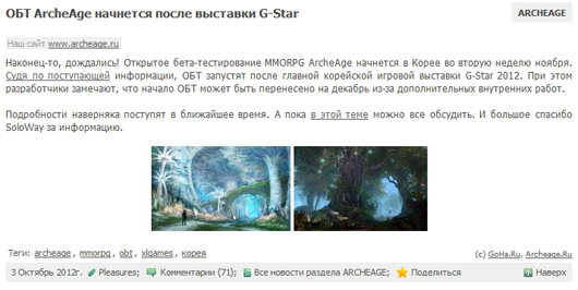 ...ru)'는 '아키에이지' OBT가 한국 지스타2012가 끝나는 11월 둘째 주 부터 시작된다고 지난 3일 밝혔다. 이 매체는 '아키에이지' OBT 일정은 엑스엘게임즈 내부 사정에 정통한 관계자(닉네임 Soloway)에게 입수한 것으로 올 12월 내부 콘텐츠를 추가 개발에 나서