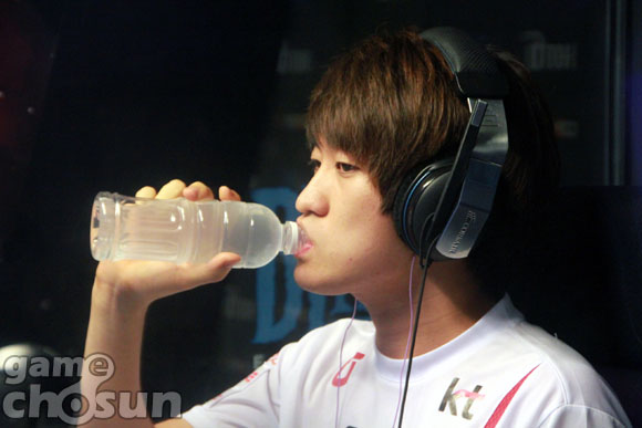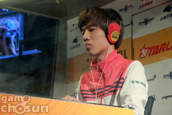 ... 1세트에서 조성주는 빠른 벙커링으로 김정우를 압박했지만 호수비에 막히고 말았다. 김정우는 바퀴와 맹독충으로 역공하며 조성주를 몰아쳤고, 맹독충을 효율적으로 사용하지 못했지만 충원된 저글링으로 막대한 피해를 입혔다. 김정우의 끝없는 공격을 겨우 막아낸 조성주는 공성전차 역공