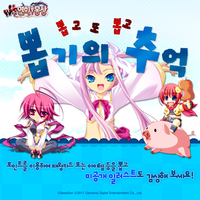 ... 감마니아(대표 알버트 류)는 웹게임 'Web연희몽상'에 '뽑기의추억' 이벤트를 25일부터 내달 9일까지 진행한다고 밝혔다. '뽑기의추억'은 어릴 적 동네 슈퍼나 문구점에서 흔히 볼 수 있었던 뽑기를 구현한 이벤트다. 이번 뽑기 이벤트 보상은 '유비' '장각' '손권