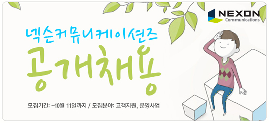 ... 넥슨커뮤니케이션즈(대표 강인수)는 25일 첫 번째 신입사원 공개채용을 실시한다고 밝혔다. 넥슨커뮤니케이션즈는 넥슨(대표 서민)의 자회사로 게임 고객지원 상담 시스템 구축 및 고객지원센터를 운영하는 온라인 게임 운영 기업이다. 모집분야는 고객지원과 운영사업부문으로 희망자