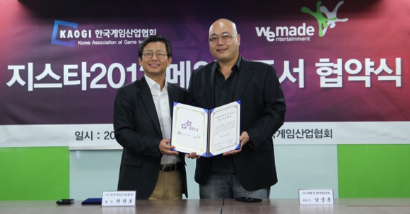 ... 이날 오전 한국게임산업협회에서 열린 협약식에는 한국게임산업협회 최관호 회장과 위메이드의 남궁훈 대표가 참석, 지스타 2012의 성공적인 개최를 위한 공동협력을 약속했다. 최관호 회장은 "위메이드가 메인스폰서를 하게 됨으로서 지스타2012가 성공적인 개최에 한 발 더 다가갔다