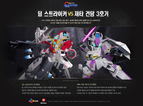 ... 'S랭크 제타 건담 3호기'는 다양한 형태의 빔 무기 장착이 가능한 유닛으로 균형 잡힌 운영이 가능하며, 스킬 조합으로 인한 강력한 시너지 효과도 가진다. '기동전사 Z건담 1~10화'를 바탕으로 한 미션전 '검은 건담'은 여러 가지 패턴으로 도망다니는 적을 추격해 파괴하는