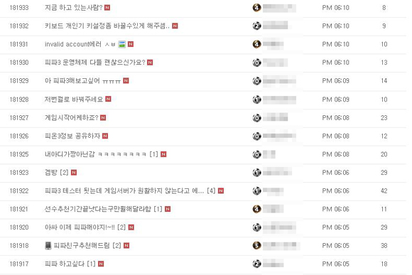 ... 20일오후 3시 첫 테스트에 포문을 연 '피파3'는 오후 시간대임에도공식홈페이지 게시판에 유저들의 게시글이 도배되고 있다. 테스트 서버가 오픈된 지 2시간 만에약 450여 개의 유저게시글이 올라왔다. 1분당 약4개꼴로 이같은 반응은 웬만한 기대작 아니면 볼 수 없다는 의