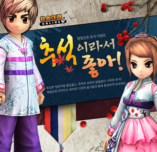 ... 또한 유저는 추석 연휴 기간 동안 홈페이지 내 자유게시판에서 덕담을 나누면 체력과 기력이 상승하는 게임 아이템을 획득할 수 있다. 이어 '열혈강호온라인'은 오는 10월 4일까지 추석 소품을 활용한 이벤트가 준비됐다. 먼저 플레이어는 몬스터 사냥을 통해 획득한 아이템을 생명력