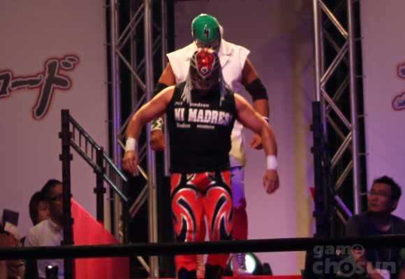 ... 더불어 빼놓을 수 없는 것이 이벤트. 이번 TGS에서는 실제 프로레슬링이 펼쳐졌다. 부시로드 부스에 설치된 링 위에프로레슬러들이 등장, 태그매치 경기를 벌인 것