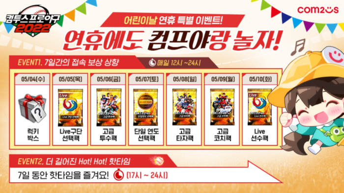 ... 먼저, 가족을 소재로 한 커뮤니티 이벤트를 실시한다. 아버지와 아들, 형제, 자매 등 가족과 함께 ‘컴프야2022’를 즐기고 있는 사연을 댓글로 작성하면, 추첨을 통해 ‘치킨 기프티콘’을 선물로 증정한다. 또한, 게임을 함께 즐
