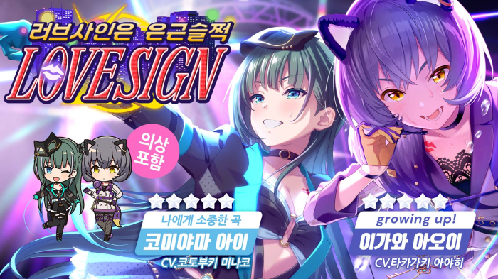 ... 오는 22일가지 5성 캐릭터 ‘나에게 소중한 곡 코미야마 아이’와 ‘그로잉 업(growing up) 이가와 아오이’와 함께 희귀 코스튬 ‘더 라스트 찬스’도 획득할 수 있다. 오는 17일까지 합숙 이벤트 &l