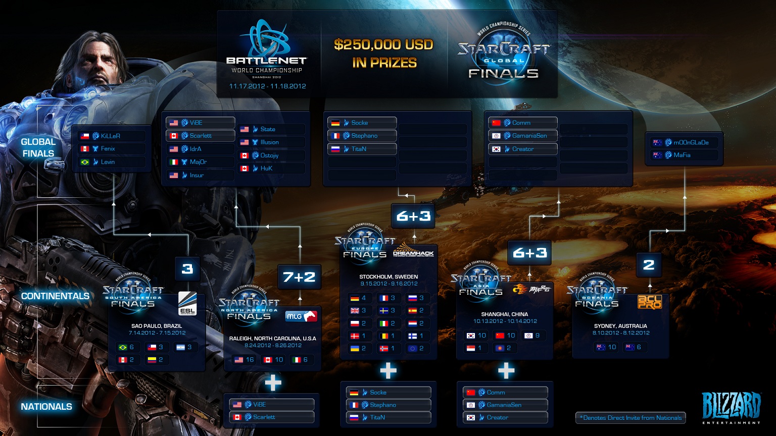 ... 또한 블리자드는 현재까지 WCS 글로벌 파이널 진출이 확정된 선수의 면면도 발표했다. 이에 따르면 남미 3명, 북미 9명, 유렵 3명, 아시아 3명, 오세아니아 2명 등 총 20명이 결정됐다. 아시아에서는 현재 장현우(한국, 프라임)를 비롯해 양지아정(대만), 센후이(중국