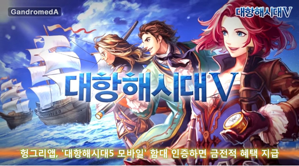 ...나. 다'로 '대항해시대5'에서 본인의 함대 화면을 캡처해 '대항해시대5 헝그리앱' 커뮤니티 내에 있는 ‘이벤트’ 카테고리에 인증하면 추첨을 통해 헝그리앱 내에서 현금처럼 사용할 수 있는 밥알 포인트를 지급한다. 본 이벤트는 10월 22일까지 진행하며 자세한 내용은 '대항해시대