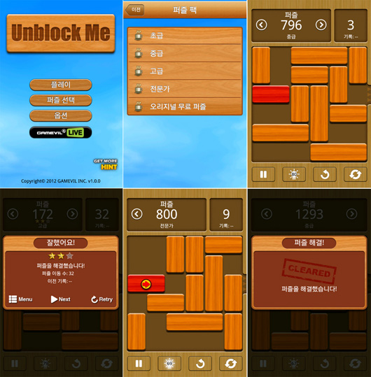 ... 게임빌(대표 송병준)은 퍼즐 게임 ‘언블록미’를 구글 플레이 스토어에 출시했다고 12일 밝혔다. '언블록미'는 뒤죽박죽 얽혀 있는 블록을 옮겨 붉은 블록을 밖으로 빼내는게임으로 초보자부터 전문가까지 4단계의 맞춤형 레벨과 4,200여 개의 다양한 퍼즐로 구성돼