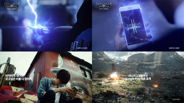 ... 당신의 손 안으로”라는 내레이션과 함께 공성전이 펼쳐지는 장면을 담고 있다. 내레이션은 모바일의 한계를 넘은 초대형 MMORPG '레볼루션'의 웅장함을 표현하기 위해 국민배우 김명민이 맡았다. 넷마블은 구글플레이와 '레볼루션' 사전예약 이벤트에 초점을 둔 광고 마케팅도 동시
