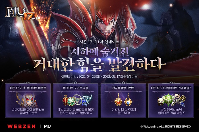 ... 새롭게 등장하는 ‘칸투르 지하시설’은 고대 칸투르 유물 발굴에 나선 아르카 학자들이 발견한 지하 사냥터로 캐릭터 레벨 1,190레벨부터 입장할 수 있는 고난이도 지역이다. 웹젠은 ‘뮤 온라인’의 캐릭터 최대 성장 레벨을 1,