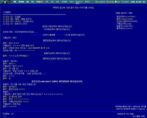 ... 세이클럽의 ‘추억의 PC통신’은 모뎀소리는 물론 파란색 바탕의 화면에서 텍스트를 주고 받는 기능까지 과거 PC통신 채팅 서비스가 재현됐다. 접속 순간 ‘atdt 01410’ 입력화면을 볼 수 있으며 ‘/h’, ‘/q’, ‘귓속말’과 같은 명령어를 수행할 수 있다. 세이클럽