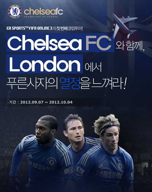 ... 첼시 FC 클럽 투어 참가자 모집 기간은 금일부터 10월 4일까지로, ‘피파온라인3’ 공식 홈페이지에서 자신의 캐릭터를 생성한 후 클럽투어 참여하기 버튼을 누르면 신청이 완료되며, 참여자 전원에게 홈페이지 내 포인트인 10골 포인트를 지급한다. 또한, 이번 첼시FC 클럽