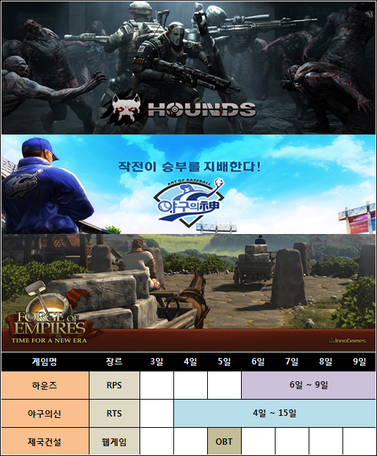 ... 먼저 9월 첫 포문을 여는 게임은 네오위즈게임즈(대표 윤상규)의 '야구의신'이다. 본격 시뮬레이션 야구의 새 지평을 열 것으로 기대되는 이 게임은 사실적 기록으로 이미 인정받은 미국 야구게임 '베이스볼 모굴'의 엔진을 그대로 사용한다. 이노게임스코리아(대표 마이클질머)