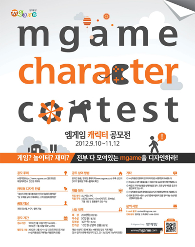 ... 이번 공모전은 고객과의 지속적인 소통의 일환으로 마련됐으며 개인 또는 팀 단위로 누구나 참여할 수 있다. 참가자는 ‘세상의 모든 재미를 담은 인터넷 놀이터 엠게임’이라는 슬로건 아래 엠게임만의 기업 이미지를 독창적이고 친근한 캐릭터로 만들면 된다. 이 행사는 오는 10일