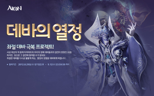 ... 엔씨소프트(대표 김택진)는 ‘아이온’에 8월 29일부터 9월 12일까지 ‘데바의 열정’ 이벤트를 실시한다고 29일 밝혔다. 이번 이벤트는 바쁜 시간에 쫓겨 게임을 즐길 시간이 부족한 유저들이 쉽고 다양한 방법으로 게임을 즐길 수 있도록 구성됐다. 유저는 게임 내에서