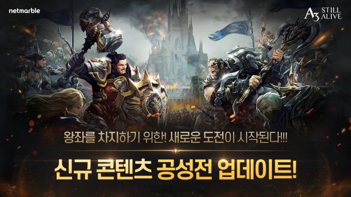 ... 성을 방어하는 한 개의 수성 길드와 두 개의 공성 길드 등 최대 3개 길드가 참가할 수 있으며 공성전이 끝날 때까지 왕좌를 차지하는 길드가 승리하게 된다. 오는 17일 오후 10시에 첫 공성전이 열리며 격주로 진행될 예정이다. 이번 업데이트로 11등급 망토 문양이 추가됐